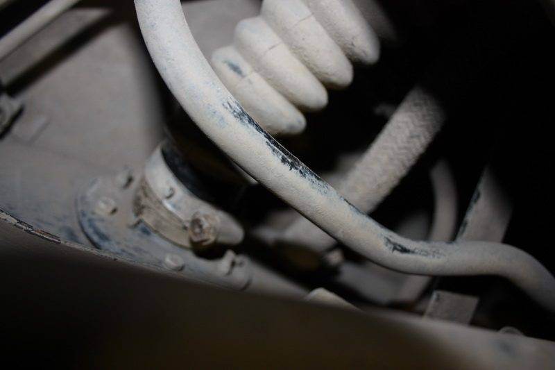 Комментарий к файлу: Теперь снизу в переднем левом углу бака откручиваем трубку высокого давления и обратки, а также мелочь типа тросы ручника и защиту от выхлопной трубы, после откручиваем два болта головкой на 12ть которые держат две лямки(крепление бака)