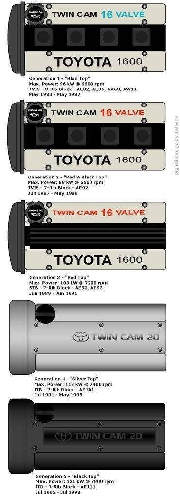 Alien007 имел ввиду 4A-GE,вот тоже интерессна эта темка,но я так понял они тоже различаються головкой и числом клапанов и соответственно мощностью,вот картинка с инета,я так понмаю любой из них можно в каринку воткнуть,вот ссыла на форум,может по этим движкам что то накопаешь,может и свап найдешь,навроде там что то было,не на каринку конечно,но так для общего представления Alien007 имел ввиду 4A-GE,вот тоже интерессна эта темка,но я так понял они тоже различаються головкой и числом клапанов и соответственно мощностью,вот картинка с инета,я так понмаю любой из них можно в каринку воткнуть,вот ссыла на форум,может по этим движкам что то накопаешь,может и свап найдешь,навроде там что то было,не на каринку конечно,но так для общего представления http://gt-irk.ru/modules.php?op=modload ... picdays=0&