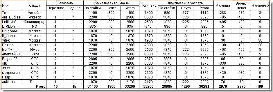 И напоследок. Дозаказываю стойки, одну пару передних и две пары задних. Уточняю, правильно ли поняли. Правильно.