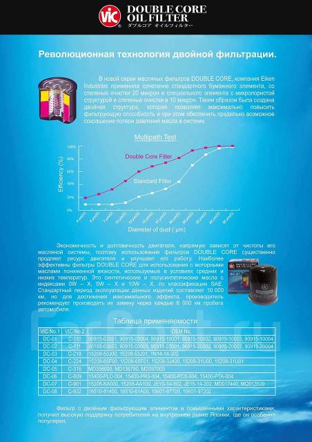 MerTV писал(а): Новинка от фирмы VIC: Фильтр масляный VIC Double Core: http://static.baza.farpost.ru/v/1328177022730_bulletinЗаказал такой на пробу интересно ,чисто любопытства, что ты "изпробуешь"....как определишь качество фильтрации?...если простой c-110 по тестам и испытаниям стоит на первом месте то этот должен быть ещё лучше... только как это прочуствовать и определить ....
