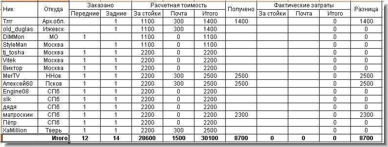 Текущее состояние см. в прилагаемой табличке. Прошу проверить, все ли правильно. В дальнейшем табличку буду обновлять.