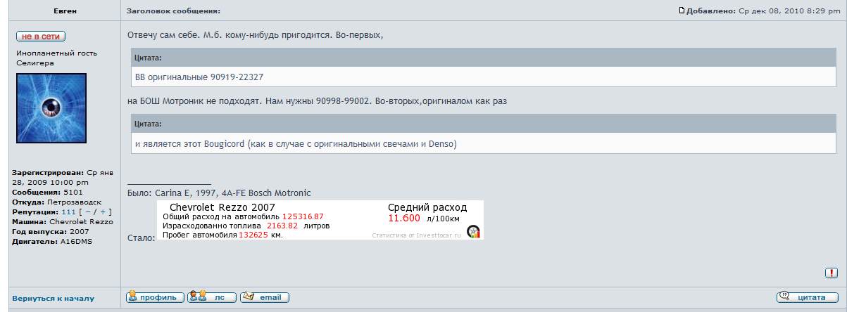 _________________ Было: Carina E, 1997, 4A-FE Bosch Motronic; Chevrolet Rezzo, 2007 Стало: VW Sharan 1.9TDI ASZ, 2004 + Ford Transit 2.0 DOHC, 1998, грузопасс