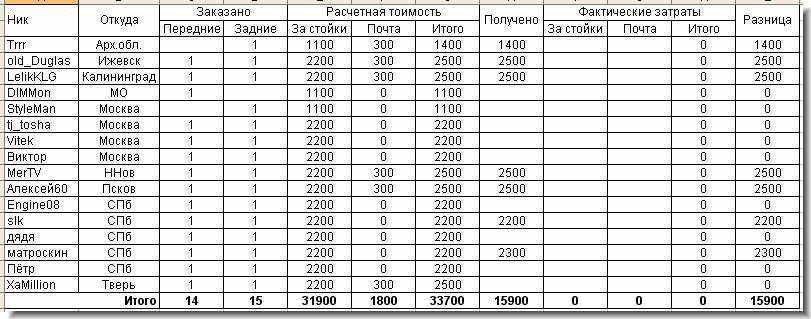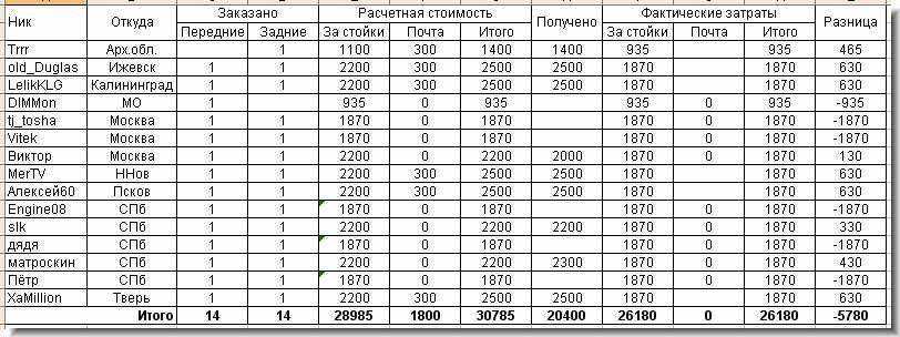Пару задних дозаказал, но готовы будут не раньше вторника. В этой связи прошу ChigivarU, как вскочившего на подножку в последний момент, подождать чуть-чуть