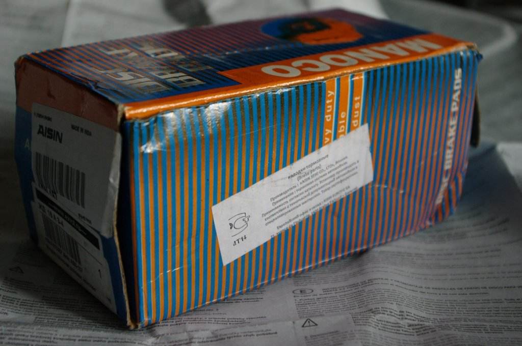 Подскажите по колодкам, заказывал в экзисте колодки aisin asn-154. Пришли колодки в сине-оранжевой упаковке с надписью manoco, aisin только на наклейке присутствует. Что это за колодки такие? Хотя до этого тоже aisin брал, помоему такая же коробка приходила, правда внимания на нее не обратил, 80 тысяч отходили.