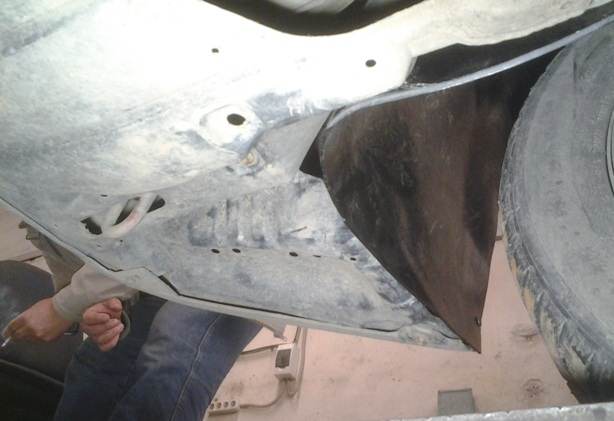 В процессе примерки выяснилось, что у локера отсутствует передняя горизонтальная часть. Поэтому решено было скомбинировать часть старой родной защиты и локер. Дыру между бампером и локером в р-не петель для буксировки нужно закрывать обязательно, иначе вся грязь полетит внутрь арки. На фотках хорошо видно как всё получилось. С водительской стороны родная защита была повреждена, поэтому пришлось колхозить из кусочков. С пассажирской всё более эстетично.