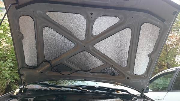 Всем привет и хороших выходных!!! В общем решил заморочиться с утеплением капота, т.к. зима на носу, а машина остывает очень быстро зимой. Буквально 20-30 минут и все. Хотел взять автоодеяло или универсальный утеплитель на клипсах но бюджет жаба не одобрила Решил импровизировать с помощью изолона  . Взял один лист толщиною 8мм и два листа 3,5 мм, а также клипсы примерно такие как на фото 11 штук (по количеству отверстий в ребрах капота). Используя картон от коробки и листы бумаги формата А3 (рисунки дочери)))) вырезал шаблоны и по шаблонам вырезал из толстого листа дольки для проклейки капота в межреберных местах . Обезжирил, подогнал по месту и приклеил. Много мороки с трубками омывателей и с самими омывателями. Пришлось вспомнить уроки в начальной школе и искусство аппликации))) После, по верху проклееных межреберных ниш, вторым слоем пустил два листа тонкого изолона (немного в нахлест по центру) ну и подстраховался клипсами. Получилось то, что получилось, но звук из под капота намного тише (хотя и так шептала тфу тфу тфу  ) В общем в итоге имеем такой результат за 3 часа танцев с бубном и бюджета рублей 500-600 (если переводить на российские). Будем наблюдать и делиться опытом эксплуатации этой аппликации. Результат трудов на фото. Добавлено спустя 5 минут 40 секунд:EMMEN писал(а): Решил импровизировать с помощью изолона... Пы.сы. Изолон с самоклейкой стороной и термостойкостью до 100 градусов