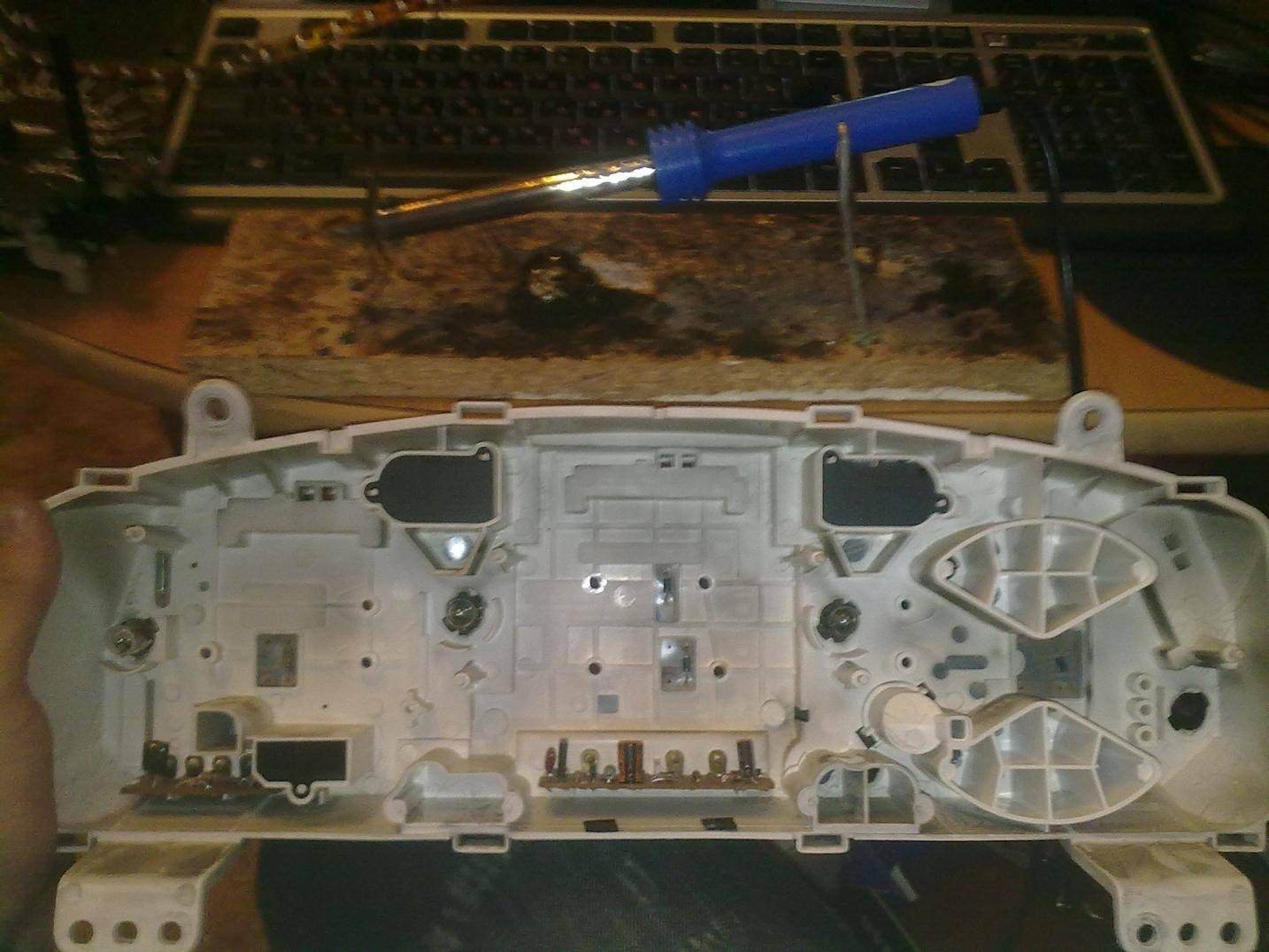 я пытался также подсветку сделать только использовал диодную ленту с смещенными диодами на край (по моим предположениям должна была получиться диодная лента в форме круга которая светит прямо на спидометр), использовал синюю диодную ленту, но к сожаления свет не пробивался как следует :oops: :oops: :oops:
