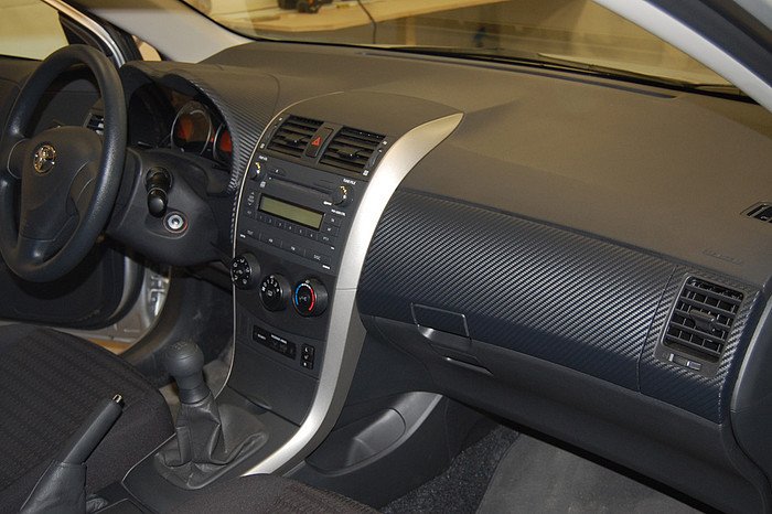я оклеял ту панель где магнитола целивокую)