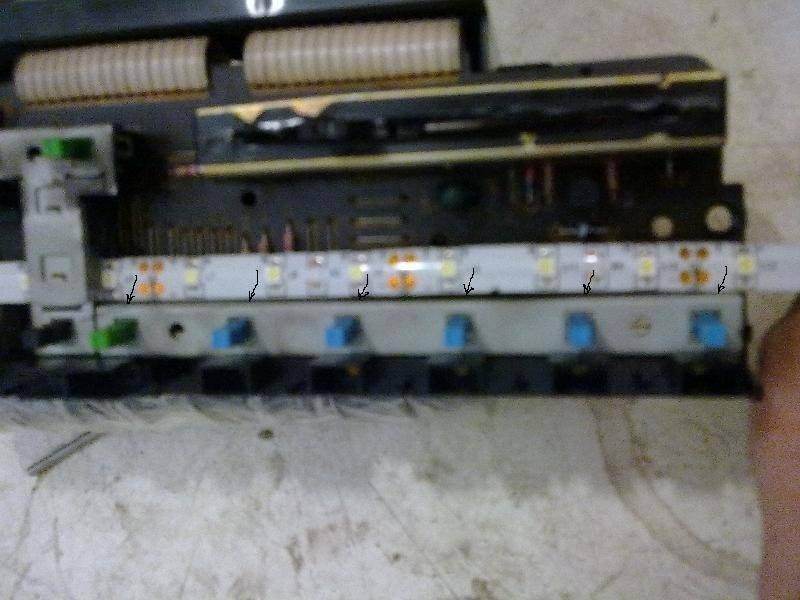 как и обещал выкладываю фото. там видимо стоит зеленый светофильтр т.к. когда я поставил синие лампочки панель горит красным светом, прикольно  на фото видно, еще сфоткал приборку с задней стороны под цифрой 1 лампочки с большим цокалем, под цифрой 2 с маленьким.