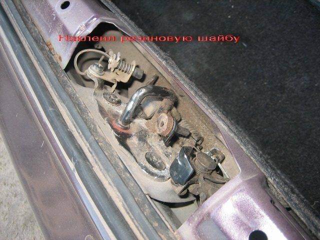 Пётр писал(а): Скорее всего уставшие аммортизаторы не дают замку выйти из зацепления, помогает приклеивание маленькой резиновой шайбы, толщиной в 5-10 мм, на рычажёк который выталкивает крышку.... смотри на замок сверху и чуть правее него рычаг.