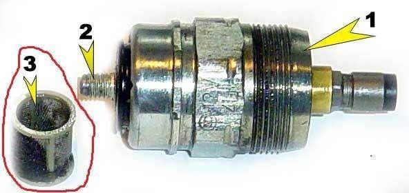 на болту обратки не стоит снимать сеточку Она маленькая -стоит только продуть А вот на входе под болтом -переходником и под клапаном отсечки -немешает
