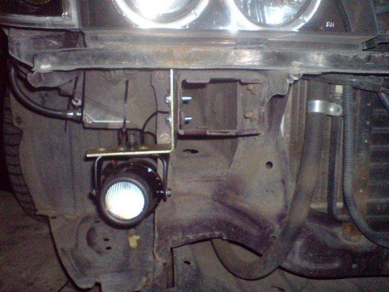 4. на уголки навесил туманки и родным болтом М8 закрепил..
