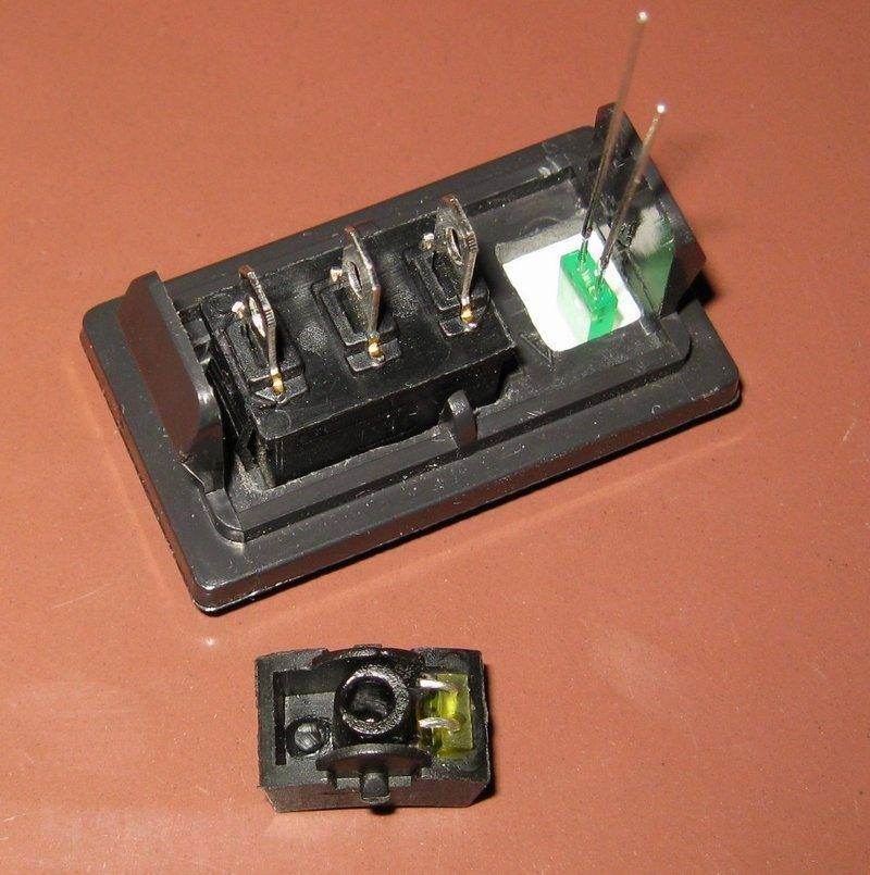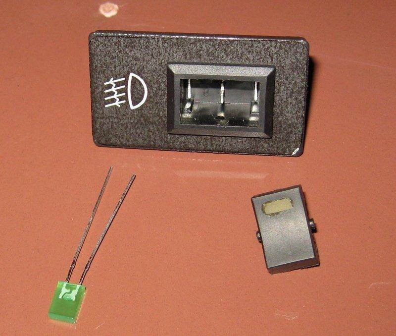 зеленый светодиод вставлен зад пленка, он освещать белый значек при включена подсветка баннера, a желтый при вкл. противотуманки.