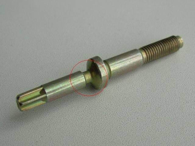 Как и обещал, выкладываю фото болта, красным кружком обозначено технологическое место обламывания болта при зажимании.