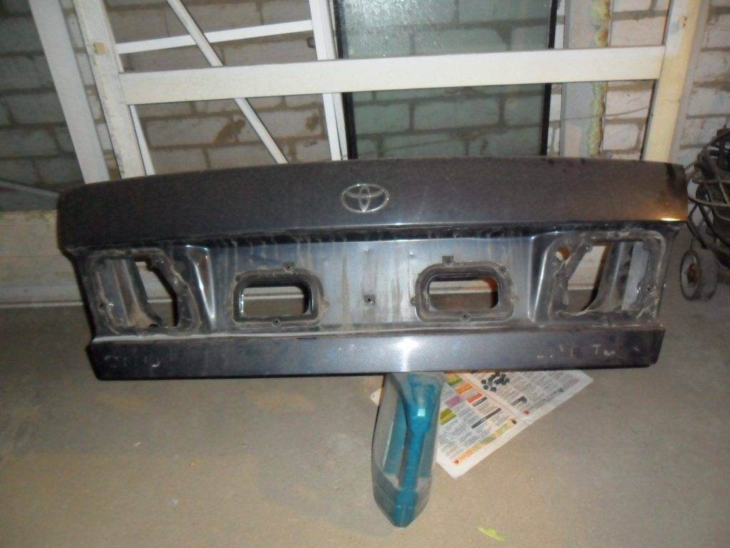 Тебе подойдет крышка багажника либо с Карины Е, либо от Короны в 190 кузове,но с отдельными задними фонарями(бывает еще с целым,во всю длину багажника)