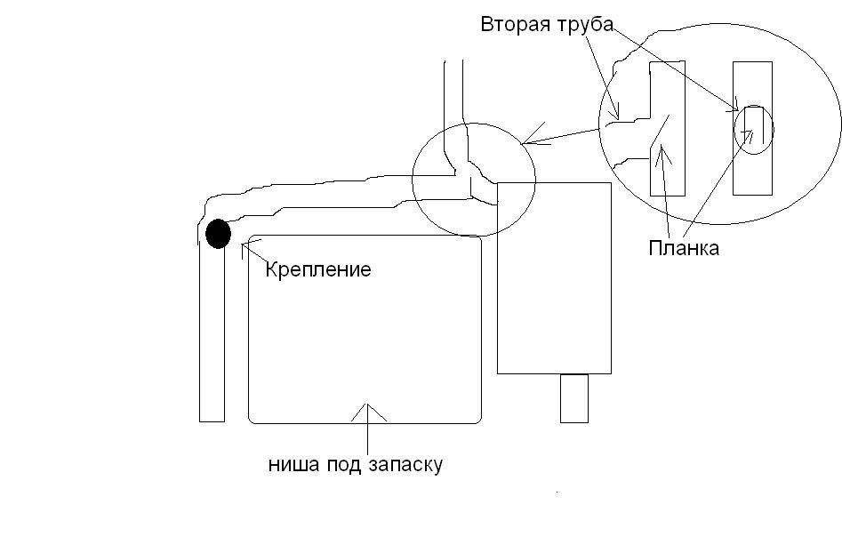 Снизу сейчас не сфоткаю. Нет ямы а так плохо видно. Вторая труба держится на одном креплении возле изгиба. Получилось неплохо. Всем понравилось. Если что спрашивайте расскажу.