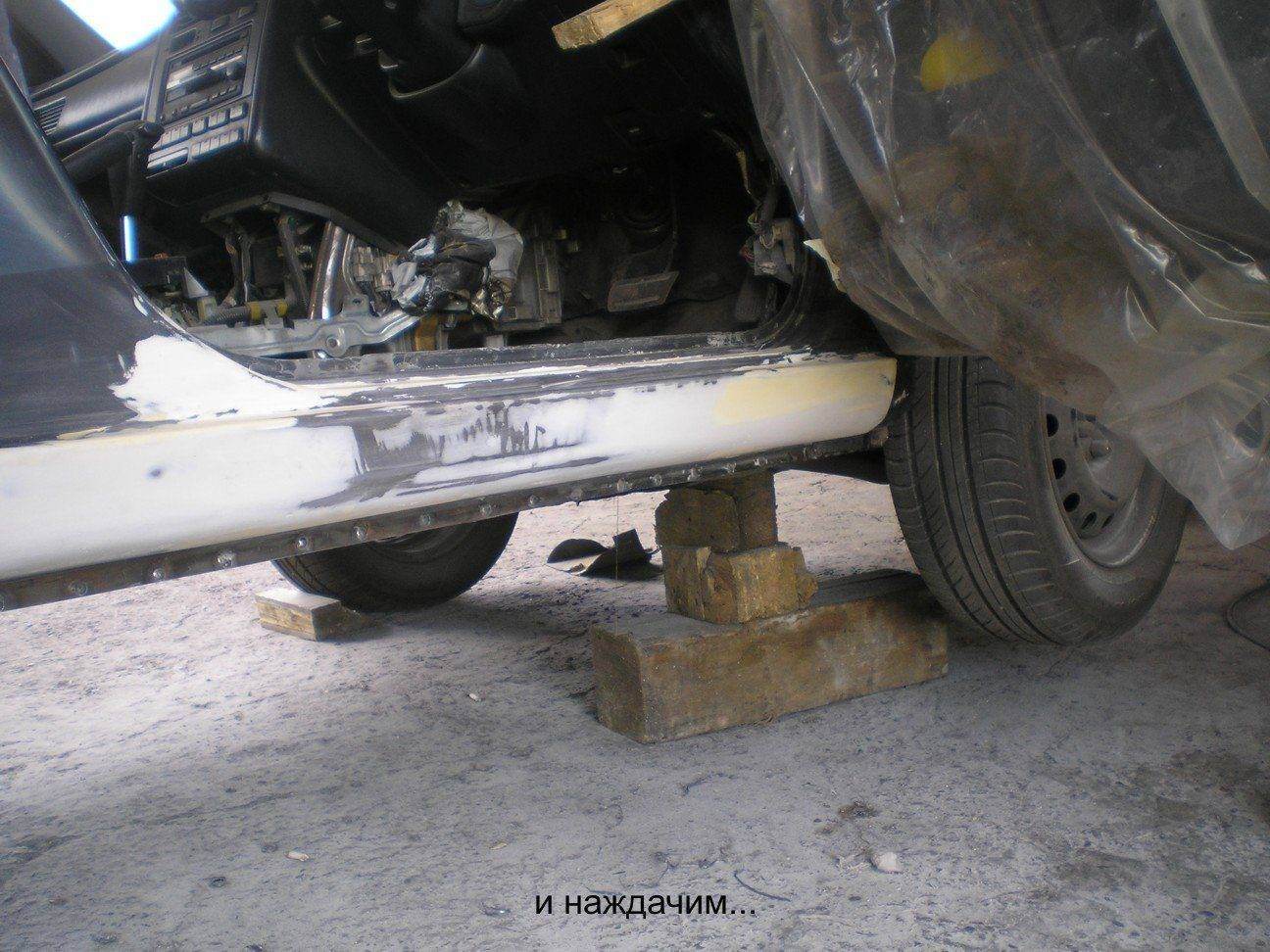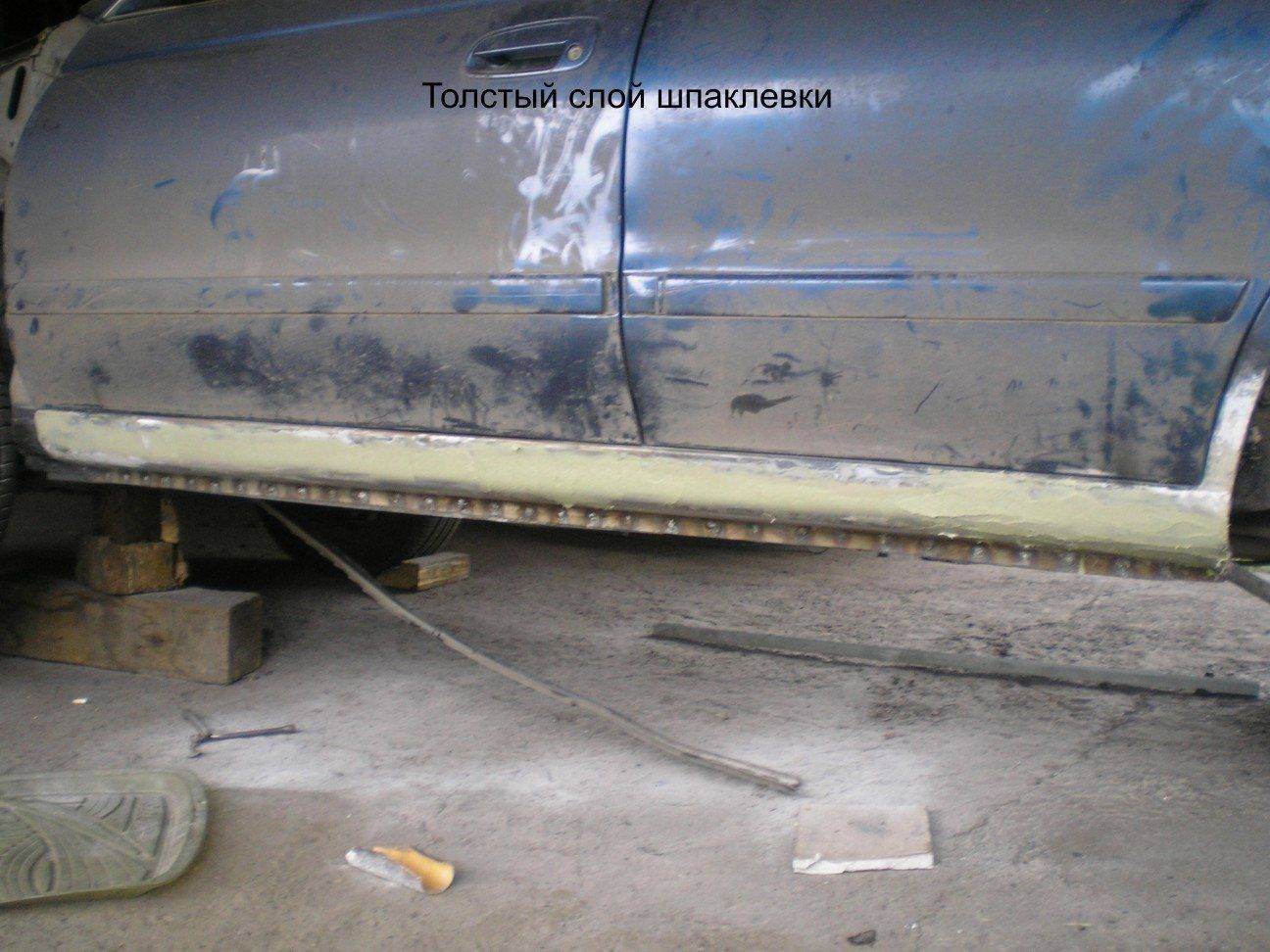 А так,на вскидку,чем я пользовался:шпаклевка со стекловолокном,финишная,наждачки всякие,где не шпаклюется-покрасил краской по ржавчине из строительного магазина. Зашпаклевал,занаждачил,потом грунт и краска,а далее или лак, или антигравий(для порогов в частности). На днище какая-то наша битумная мастика,во внутрь порогов-мовиль из баллончика.