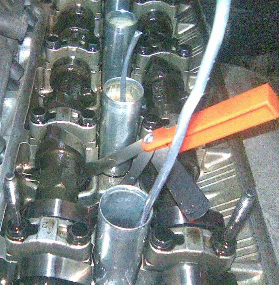 А теперь о том, что можно проверить самому, "малой кровью". Приподнимаешь правое колесо на домкрате, машину на 5 передачу, выкручиваешь свечи (без этого крутится будет туговато), снимаешь клапанную крышку.
