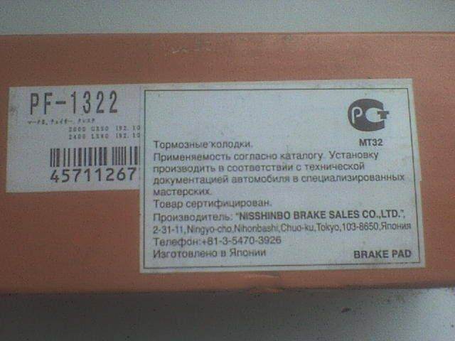 менял тут на камри колодки не давно. блин забыл что там было написано.