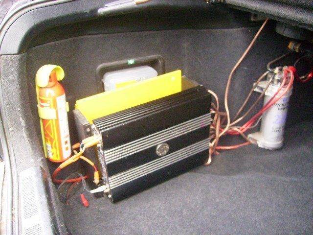 Всю систему строил на компонентах Earthqauke (отклонение - силовые и управляющие провода и усилок на саб фирмы Kicx). Голову установил DVD от Пионера.