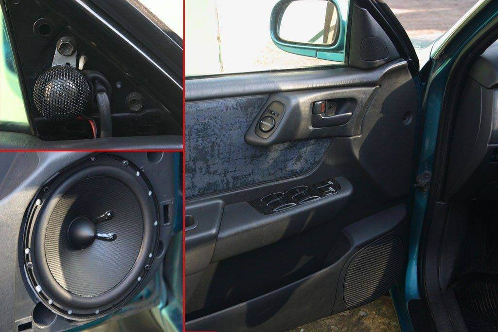 Да место было, стояли 13-е динамики в пластиковых корзинках (где-то 16 см в диаметре), которые вкручивались в саму дверь......