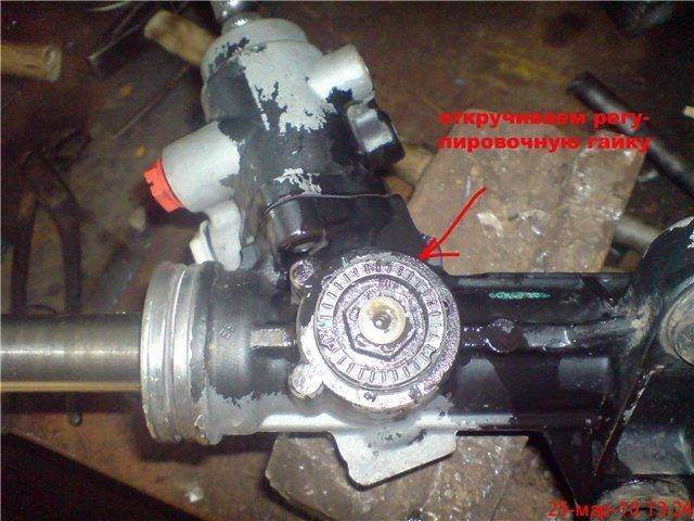 Andriy писал(а): Попробуй здесь подтянуть. Но я не уверен что удастся подлезть, рейка стоит этой гайкой к кузову. Под гайкой находится втулка, которая прижымает вал к червяку, наверно там и люфтит.