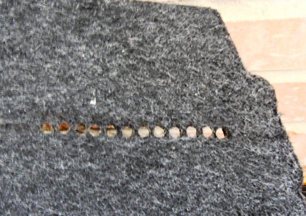Материал дна тоже не радовал, пятна, местами разлохмаченность ворса. Хорошего "корыта" на дно в местных автомагазинах найти так и не удалось. Решил купить 2 входных коврика на резиновой основе, вроде таких, резиновым клеем сделал из них один большой, 1.80 на 1.50. Хватило на дно багажника, под ноги водителю и переднему пассажиру. Коврик неплохо держит воду, устойчив к истиранию. По месту делал бумажную выкройку, коврик резал с запасом, чтобы край немного завернулся наверх типа бортика. Бюджет побольше, чем на обшивку - около 1000 рублей на багажник и коврики под передние сиденья. Вложение: