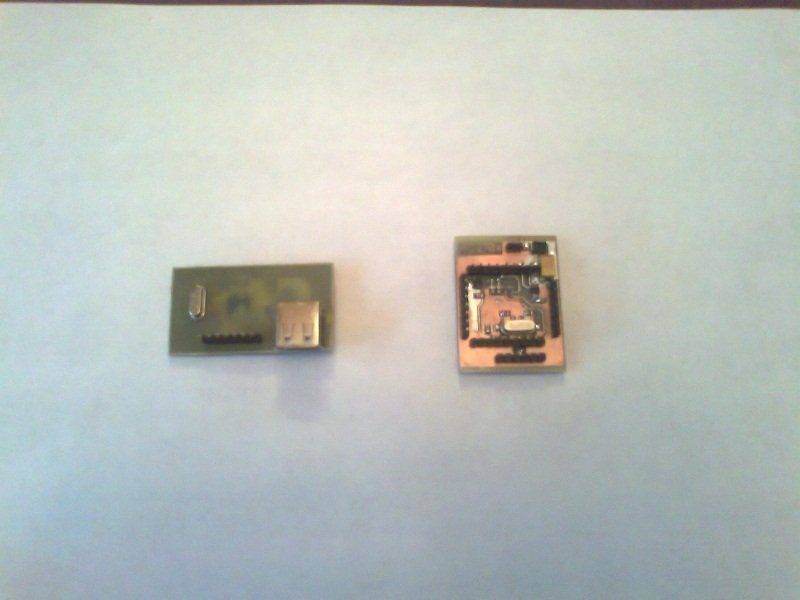Комментарий к файлу: Слева самопальный программатор на FTDI232, можно обойтись парой транзисторов и диодом. Справа сама макетка 45х32. За качество фоток извиняюсь, делал с телефона:( фотик у родителей. Надо будет, по просьбе трудящихся, сделаю фотки норамльного каКчества:)
