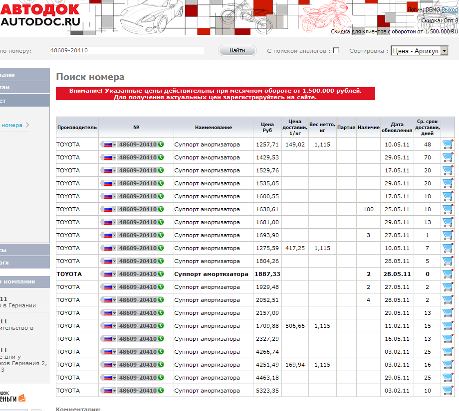 Да я реально сидел возле компа смотрел цены в экзисте, и звонил в автодок. Хоть и не на много, но в автодоке дороже было. Это факт.