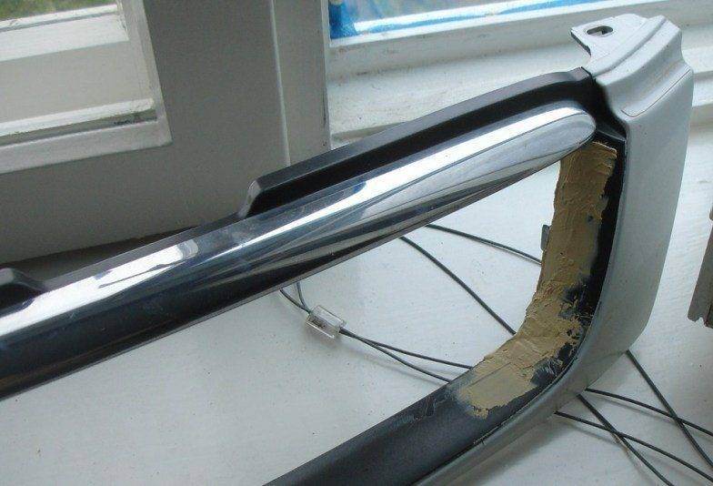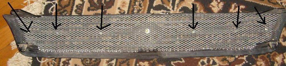 сетка эпоксидка сткло ткань (можно даже медицинский бинт) шпаклевка (волосянка) грунтовка краска(брал в болончике!!). вырезаеш центральную часть решотки (оставляем только рамку) по бокам остаются 4 отверстия два с одной стороны два с другой с внутренней стороны проклеиваем тканью пропитаной эпоксидкой с наружней стороны шпаклюем волосянкой шкурим. впаиваем сетку и загибаем ее кромку поверх проклеиваем тканью с эпоксидкой грунтуем красим и все! вроде не че не пропустил