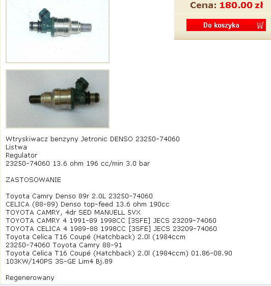 Я тут посмотрел по форсункам для 3SFE нет данных по DENSO, на сайте самого производителя о них говорится в скольз, мол устанавливается только на ОЕМ и дистрибьютор инфы никакой не дает