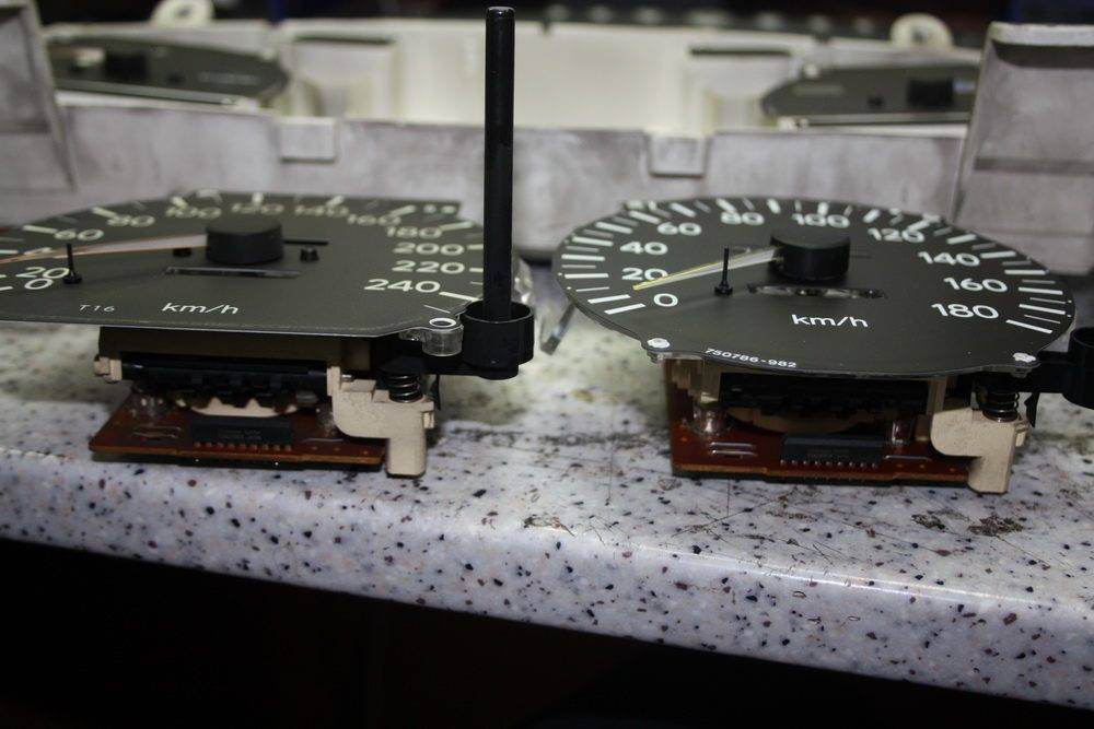 Саша писал(а): Правда, надо сказать, этот опыт на 100% не говорит о взаимозаменяемости т18 и т22. Кое над чем еще покумекать придется... Medved писал(а): И не только окошки шкала на Т22 плоская, а Т18 блюдечком неговоря отом что точки фиксации и способы крепления на световодах разные. Цитата: Можно но только приложить руки надо! В Т22 места навалом, чтобы воткнуть другой спидометр нужнобудет его закрепить(не трудно), и подключить 4 контакта, в короне, в Т16 и Т18 контактами являются саморезы, а в Т22 разьём со шлейфом и ещё один нёанс это кнопка сброса суточного счётчика у Т22 он по середине, а у тех с права но можно просверлить отверстие, стёкла с Т22 неподходят для Т16 и Т18. Короче говоря фото сделал скоро скину сам прикинешь что да как. Цитата: В место Т18 и Т16 Можно воткнуть спидометр от Короны сам механизм с платой точно, на Т18 подойдёт всё вместе без переделок с короны и спидометр просто будет показывать корректно до 180км, но если есть шкала до 240км со старго щитка, то можно её переставить и адаптировать схему! Я так понимаю блюдечком не все Т18 сделаны есть с плоским циферблатом