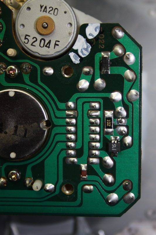 Санта Барбара часть три. Сегодня полез в приборку снова. Стрелка уровня топлива подвирала - решил поправить, а за одно захотел прижать чуток посильнее колпачек стрелки спидометра (из под колпачка пробивается красненький свет). Итог - оторвал пружинку от оси стрелки спидометра. Теперь стрелка не возвращается. С грузиком для стрелки не стал заморачиваться. Уровень топлива даже и проверять не стал. Оставил машину в гараже, на неделю уезжаю на учебу в Москву. Теперь надо искать либо блок спидометра либо приборку Т22.