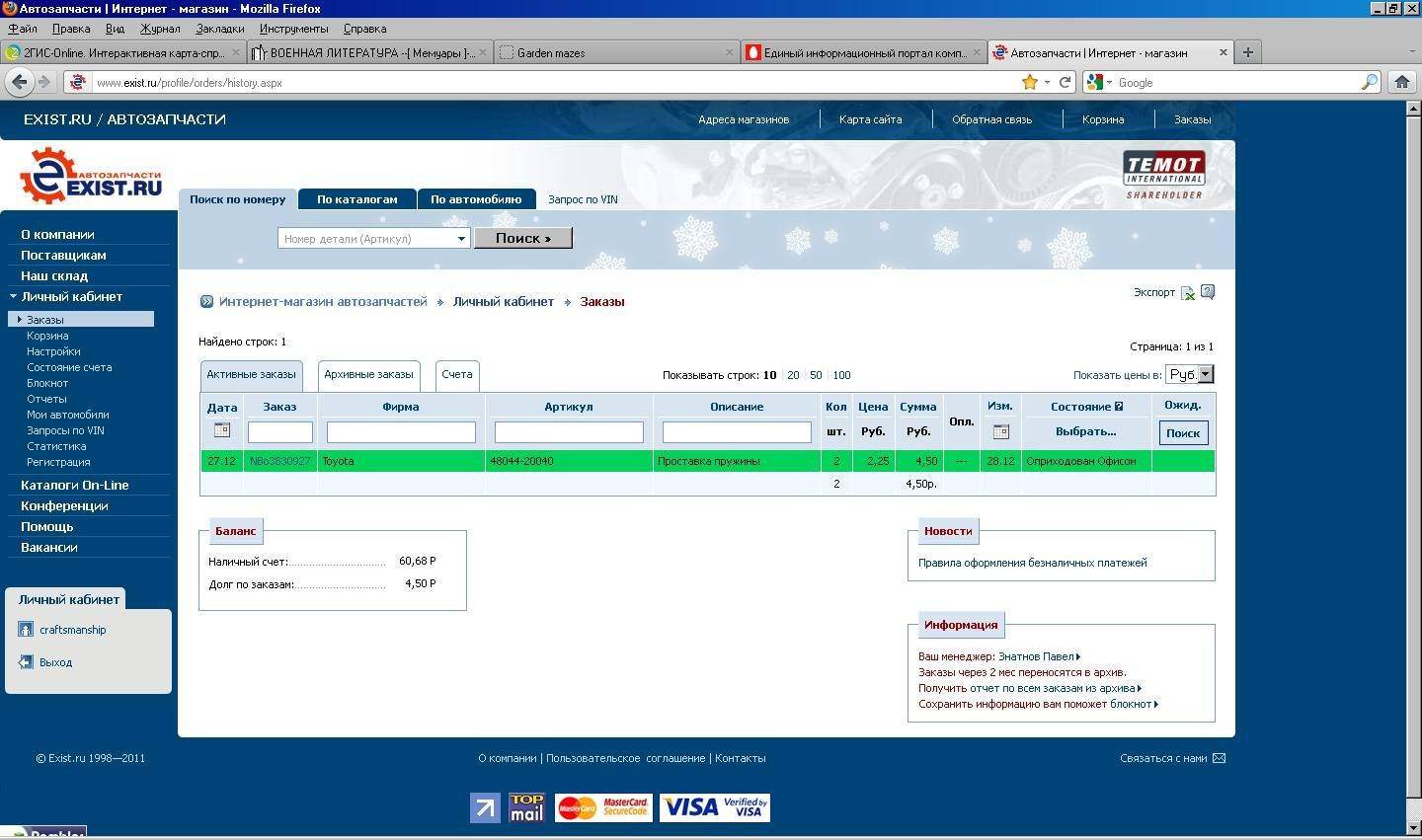 MerTV писал(а): Alex27104 писал(а): вернули деньги, без разговоров. На счет или наличкой? И какая сумма? Я 11000 руб. почти две недели тряс. Потом мне пересорт на 170 руб прислали,так вообще не дождался этих денег. И товар забрали и денег не вернули,раз пять им напоминал,потом плюнул. Еще пару раз после пытался заказывать что-то,так либо сроки вообще не соблюдают,либо снимают заказы. Больше я с ними даже работать не хочу. Кстати по теме: цена на коробочку в ексисте http://www.exist.ru/price.aspx?pcode=19101-02h00И в емексе http://www.emex.ru/Pub/finddetail2.aspx ... 02H00&ar=1Как-то емекс рулит  А ты посмотри где 2 дня доставки, хотя у тебя в емэксе скидка, но а по моим ценам экзист с 2-мя днями доставки дешевле И даже где 8 дней все равно экзист по моим ценам дешевле Без скидки похож в эмексе теперь делать нечего, зажрались. Snail Автодок у нас пока не работает