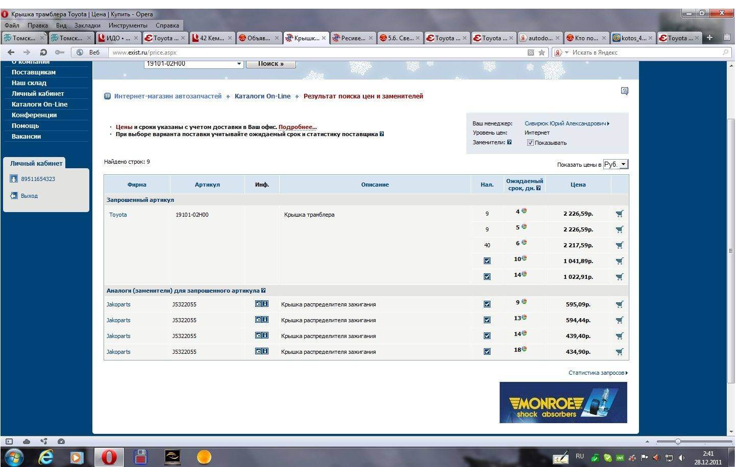 MerTV писал(а): Alex27104 писал(а): вернули деньги, без разговоров. На счет или наличкой? И какая сумма? Я 11000 руб. почти две недели тряс. Потом мне пересорт на 170 руб прислали,так вообще не дождался этих денег. И товар забрали и денег не вернули,раз пять им напоминал,потом плюнул. Еще пару раз после пытался заказывать что-то,так либо сроки вообще не соблюдают,либо снимают заказы. Больше я с ними даже работать не хочу. Кстати по теме: цена на коробочку в ексисте http://www.exist.ru/price.aspx?pcode=19101-02h00И в емексе http://www.emex.ru/Pub/finddetail2.aspx ... 02H00&ar=1Как-то емекс рулит  А ты посмотри где 2 дня доставки, хотя у тебя в емэксе скидка, но а по моим ценам экзист с 2-мя днями доставки дешевле И даже где 8 дней все равно экзист по моим ценам дешевле Без скидки похож в эмексе теперь делать нечего, зажрались. Snail Автодок у нас пока не работает