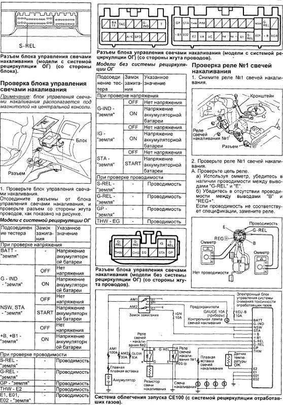 Добрый день гооспода....продолжаю ремонт своего дизелька...так как небыло почти год дома, то пропал с форума, короче вернулся я домой с командировки с Иркутской области, а тут опять зима (называется не прошел и год)., первым делом спасибо всем отозвавшимся особенно Dimon_2C, но еще не сделал, PitSem2008 писал(а): Добрый вечер товарищи, так как эта тема оказалась самой длизкой по сути, решил сдесь написать....дело в том, что решил востановить заводской режим работы свечей накаливания....купил каринку 2С неработающей системой облегченного пуска, свечи накаливания включались методом перемычки от аккумулятора , предыдущий хозяин на вопрос о причине неисправности ответил, что не в курсе....мол так и было, итак сеготня решил побороться с этим недугом, разплел косу, на предмет обрыва, вроыерил все фишки, проверил оба реле, и нисего не нашел....но в самом конце сборки обнаружил, что отсупствует перемычка с резистора (который установлен на впускном колекторе) и к свечам накала....которая есть на фото Dimon_2C в теме http://carina-e.ru/download.php?id=21726 ..вот у меня её и не оказалось...сделал эту перемычку, установил как на фото.... в итоге свечи заработали, но реле работает щелчками гдето с интервалом 2 щелчка в секунду, и полсе завода двигателя отрубается тахометр,... снимаю эту клему...работает...короче замучился я помогите, может ктото встречался с таким траблом...должна ли система работать такими рывками...отчетливо слышны щелчки реле, и точему отрубает тахометр,...пока снял эту перемычку, дабы чегото не сжечь....снетерпением жду ваших советов....куда лезть...проводка живая...реле проверено, которое возле аккумулятора...которое с права - не смог долезть не снимая много лишнего...но слышно что работает, на холодную если включу зажигание 4-7 сек. горит лампа свечей накаливания, тухнет...потом гдето через 15-20 сек слышно щелчек...но как ставлю перемычку на место(резистор и свечи накаливания) начинает щелкать и щелкать... а колхозить не охота, и так зима...мороз, но не большой...открываю капот...кидаю акум (после 9-ти месячного перерыва) сразу кидаю провод с + на свечи и щитаю до 12-ти снимаю провод со свеч, иду в салон, ключ в замок и о чудо!!! с пол оборота завелась.....но это всьо лирика, вопрос в следующем...розжился на новые реле свечей накала..№1 и №2 вот, заменил их а проблема осталась...при заводке реле щелкают и трещат, короче проверил-реле и старые и новые рабочие, резистор рабочий, так как грееться и падает ток при работе,...вопро вот в чем...где может быть проблемка (КЗ) или еще чтото после завода не работает тахометр до тех пор, пока не отключиться вторая ступень нагрева свечей (от 2-3 минут на холодную до нескольких секунд на гарячую), постараюсь сейчас сделать видео...