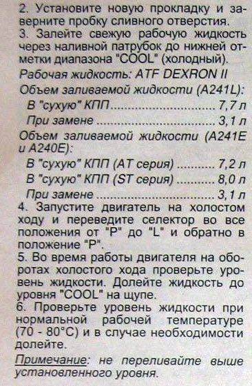 мля, да не написано ан щупе какое масло лить и на каком положении го проверять, там приведены примеры многих авто производителей, но не слова про тоету и тем более про конкретную коробку, я уже просто устал читать и вчитываться в эту ссылку, нет там ничего путевого по поводу проверки именно моей коробки.