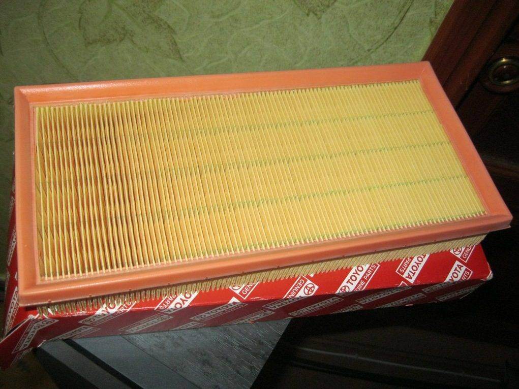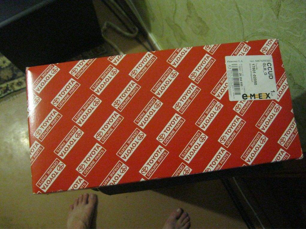 Оригинальный воздушный фильтр Toyota 17801-02050 на 4A-FE Думал что придет Денсо - как был у меня при покупке авто, с округлыми краями и идеально вставляющийся, а пришел такой - квадратный, по виду один в один как я покупал перед этим за 200 рублей хрень какую то, который еле влазит в корпус фильтра ))))
