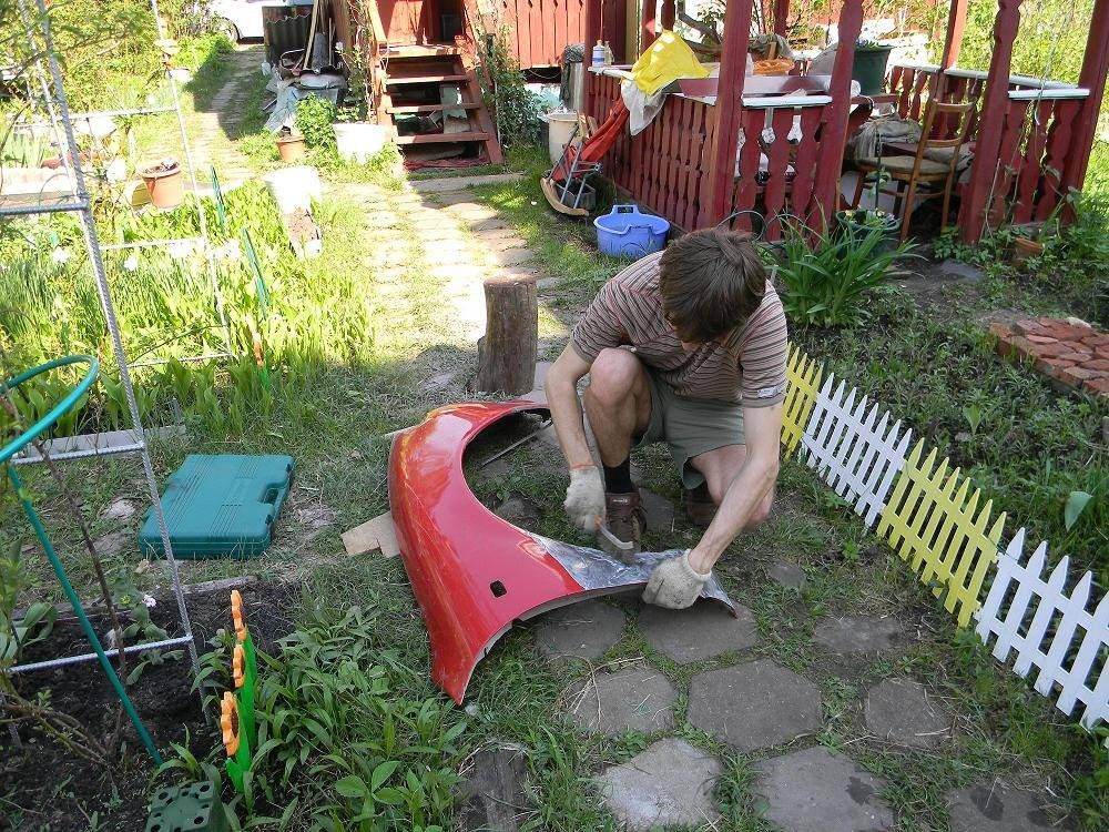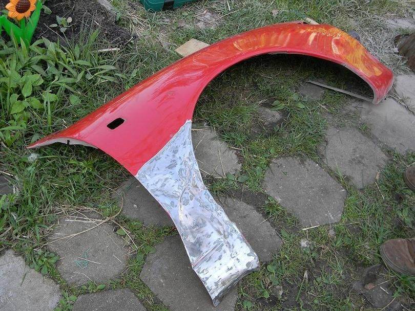 Затем было взято крыло правое, которое тоже у прошлого владельца попало под раздачу, отвезено на дачу, выгнуто в тисках с помощью молотка и чьей-то матери. Вложение: