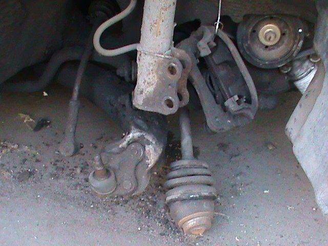 Добавлено спустя 9 минут 26 секунд:Далее обнаружил погнутую рулевую тягу, а т.к. машина в таком состоянии - недвижимость, то пришлось отпилить кусок ради идеи съёма тяги с земли как в отчёте на форуме(в итоге потерпел epic fail - сломал самосварный съёмник, в дальнейшем использовал его как рычаг) Вложение:
