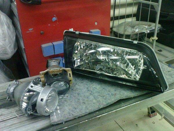 Примерно такое же я задумываю. Только тут фара блин длиннее. Самый главный гемор будет если в линзы пихать оригинальные лампы. Вот это будет жопа. Тогда придется аккум покупать на 45Ач и бачок расширительный видоизменять. Как единичный заказ или заказ для себя - круто