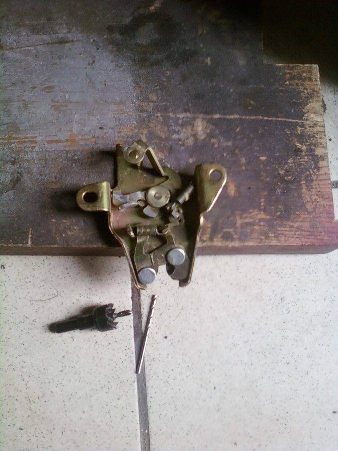 Комментарий к файлу: Сверлим отверстие в рычаге к которому подходит тяга от личинки багажника