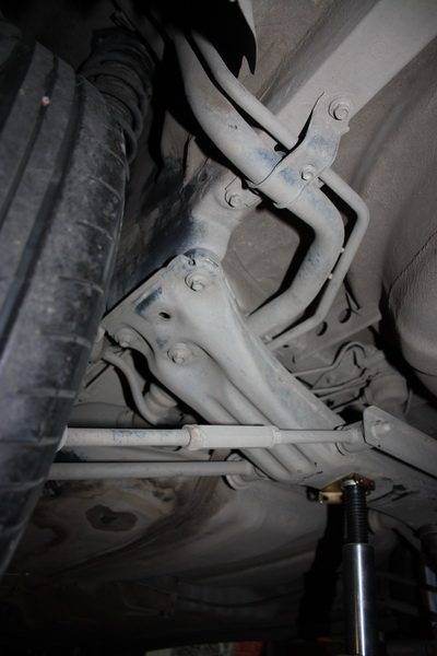 Комментарий к файлу: Теперь снизу в переднем левом углу бака откручиваем трубку высокого давления и обратки, а также мелочь типа тросы ручника и защиту от выхлопной трубы, после откручиваем два болта головкой на 12ть которые держат две лямки(крепление бака)