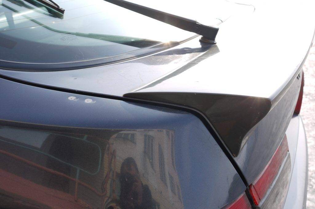 Мастер сначала упирался, но потом просверлил частично. Сначала ставил центральную часть, сверлил крышку багажника (горизонтальную плоскость), там где у спойлера болты торчат плюс клей. Плоскость со стороны значка не сверлилась, а посажена на клей, на какой не говорит. Потом ставил уши, сверлил и клеил. Делал два с половиной дня. Секреты не открывает, все что удалось узнать написал