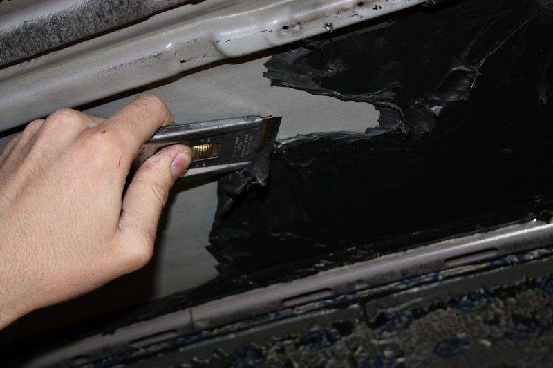 Шумоизоляция дело нужное и эфективное, при наклеивании пару раз возникал вопрос, можно ли будет её снять без ущерба для кузова? И вот потребовалось очистить крышу от вибропласта. Сначала пробовал оторвать руками тянув за краешек листа шумки, но так как клеилась шумка на совесть, ни чего не вышло только железо легко гуляло(так и крышу помять недолго). Следующим шагом был фен, разогрев шумку почти до жидкого состояния попробовал её отодрать, но кроме чёрных соплей до пола и каучуковой слякоти на потолке ничего не получалось, одним словом как жевачку разогреть и попробовать оторвать. Далее после того как шумка остыла потянул за край фольги, струдом но её удалось оторвать от липкой массы, далее думал использовать бензин и тряпки что из этого получилосьбы страшно даже представить. И тут меня осенило и решил попробовать нож для снятия тонировки, как выяснилось не зря! Очищает сразу до окрашеной поверхности и если держать его под определённым углом даже нецарапает краску. За час почистил потолок, он ровный поэтому быстро получилось, а труднодоступные места можно почистить с помощью оторванной липучки, так же как раньше в школе липучку с доски собирали и одёжку чистили. По окончании можно пройтись очистителем битума, а то заляпаной поверхность смотрится.