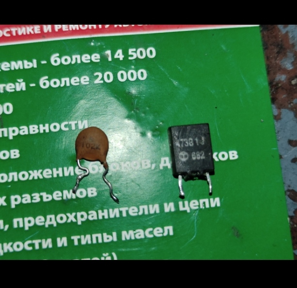 Что за элемент лежит рядом с конденсатором? У обоих сопротивление бесконечное. Сигнал с усилителя заходит в антену(катушку) с неё выходит, доходит до данных элементов, на выходе из них тишина, осциллографом смотрю. Помогите опоздать элемент, на плате обозначается значком конденсатора с приписаной буквой F
