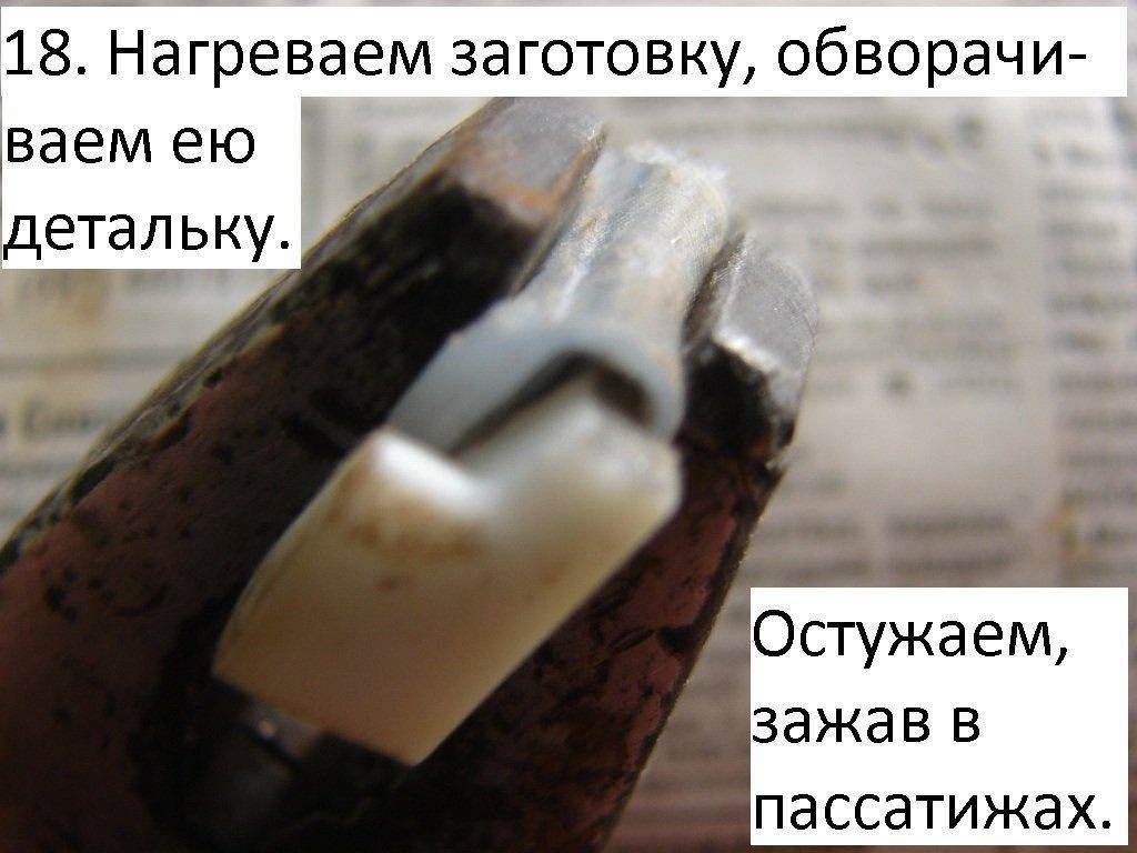 Комментарий к файлу: Заказать токарю болванку с такими размерами, длина минимум 15см, лучше см. 50, можно с кем нить поделиться. Нарезаем ее как показано,дорабатываем в тисках при помощи напильника, надфиля и полотна по металу.