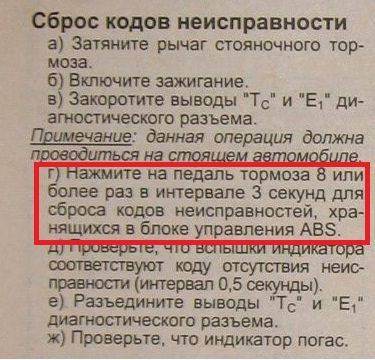 MerTV писал(а): При включении даже на ходу система тут же проходит проверку и с задержкой в пару секунд включается. У меня только после передёргивания ключа зажигания на ходу система снова начинает работать, а если не передёрнуть ключ то ошибка висит пока незаглушиш машину, как то так. Добавлено спустя 45 минут 48 секунд:Вот что нашёл, раз при сбросе кодов неисправности с блока ABS используеться педаль тормоза, значит там завязка с блоком полюбому есть