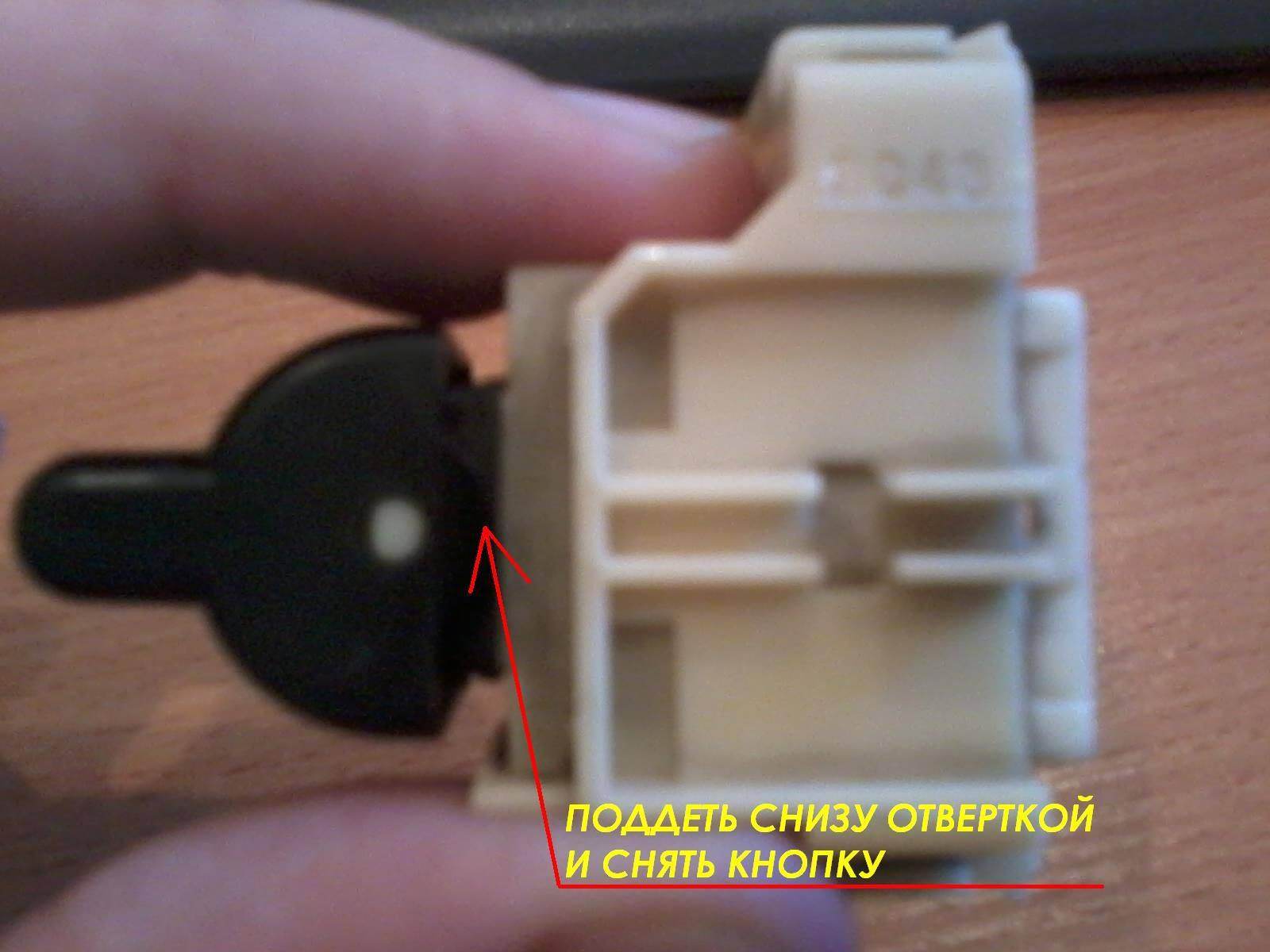 Добрый день! Такая ситуация,передняя пассажирская кнопка стекло опускает,но не поднимает.С водительского центрального пульта и опускает и поднимает.Ничего(кроме возраста машины  ) не предвещало данной проблемы.Никуда не лазил(ну кроме задней левой двери) Я так понимаю,там что то с контактами или механизмом кнопки. Теперь вопрос: кнопка пассажира вынимается сверху,не снимая обшивки или все же обшивку надо снимать?Не хочется рисковать сломать кнопочку)