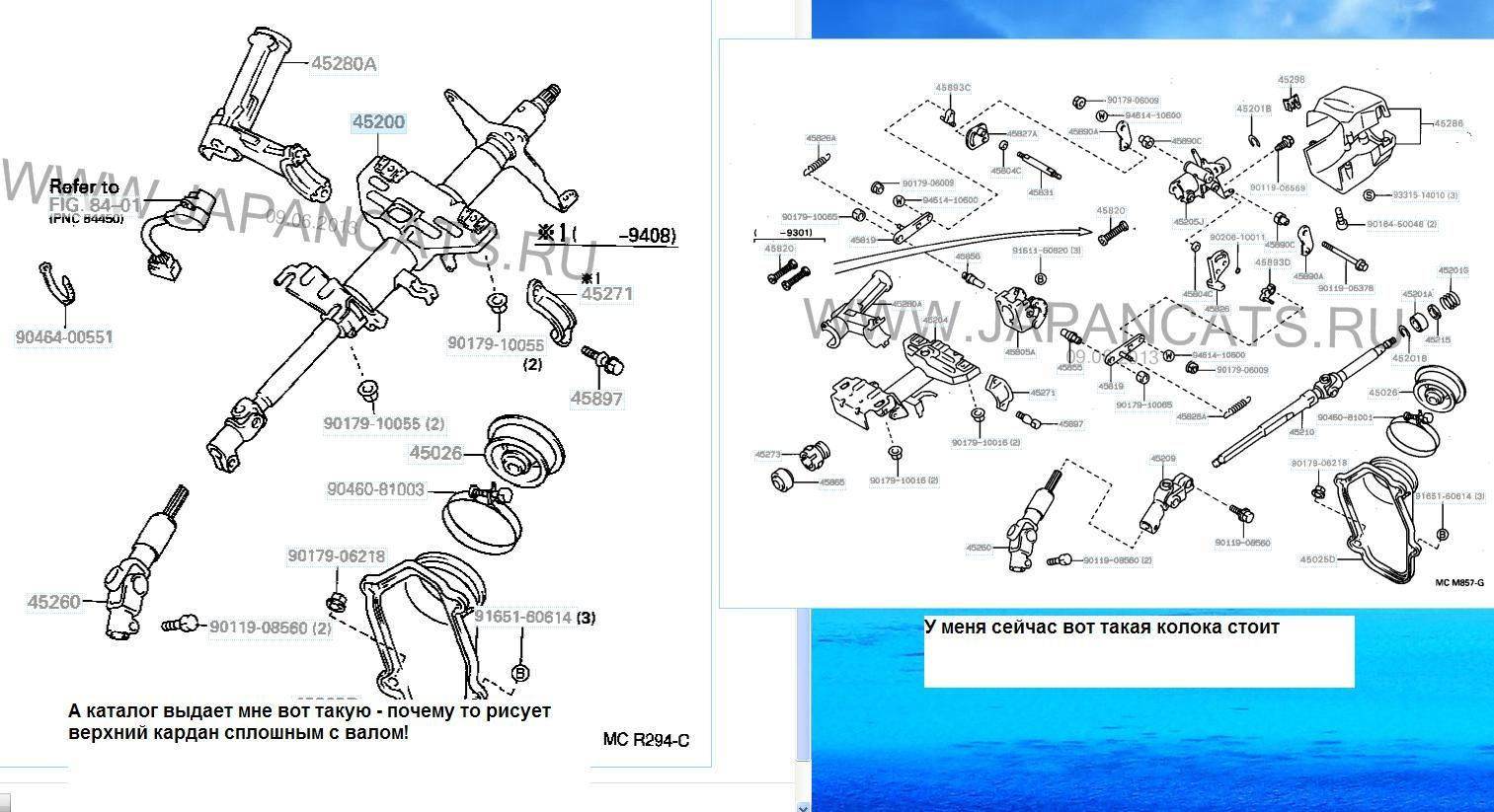 MerTV писал(а): не нормальное расположение карданчика. единственное что мне кажется - то вполне может быть что у меня стоит не та колонка. потому что и предыдущая, и замененная мною (правда я выбирал ее по образу и подобию первой) - не совсем подходит по посадочным местам - когда сажал ее на шпильки, ощущения что посадочные места колонки на 1 см короче - из-за чего у меня те закладные, что ближе к водителю, просто напросто выехали из пазов колонки на 1 см (см рисунок). то есть если учесть, что там была другая совсем колонка, возможно с более коротким валом, тогда кардан встанет как надо. Добавлено спустя 10 минут 21 секунду:во, че каталог выдает Добавлено спустя 1 минуту 5 секунд:а мож у меня такая должна была стоять???